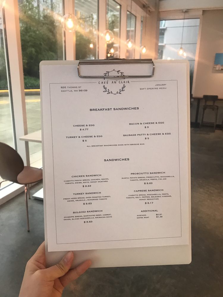 Welcome to Cafe An'Clair - 9th & Thomas, a delightful spot nestled at 826 Thomas St, Seattle. Here, the menu revolves around a tantalizing selection of sandwiches and invigorating caffeinated beverages. Each sandwich is a masterpiece, crafted to perfection: the Bulgogi Sandwich marries Korean marinated beef with Sriracha mayo and cheese, while the Turkey Sandwich offers a savory blend of sun-dried tomato mayo and arugula. Veggie lovers will enjoy the fresh Caprese Sandwich featuring pesto and mozzarella.